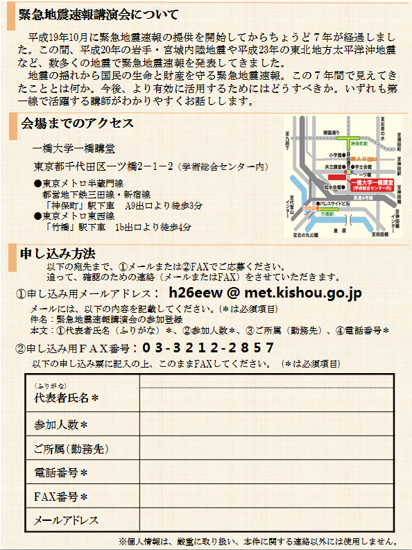 | <主 催> | 気象庁 一般財団法人気象業務支援センター 緊急地震速報利用者協議会 | |