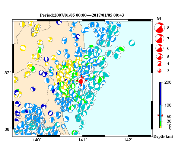 | 2017年01月05日00時43分59.1秒 | 北緯36度51.7分 | 東経140度58.7分 | 56km | 5.3 |