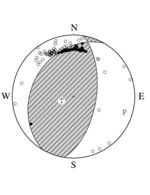 | 走向 | 傾斜 | すべり角 | P軸 | T軸 | N軸 | ||