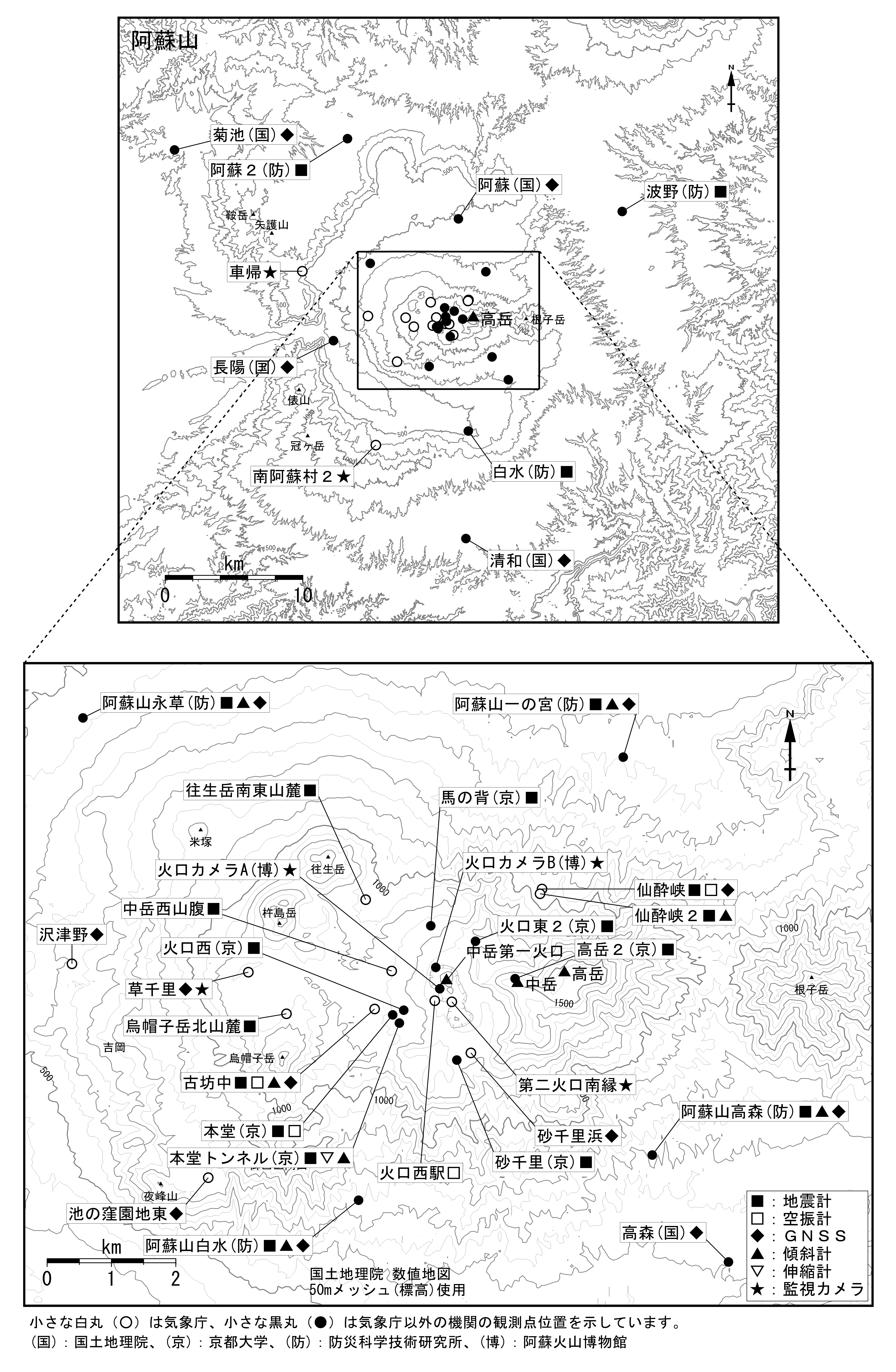 阿蘇山 観測点配置図