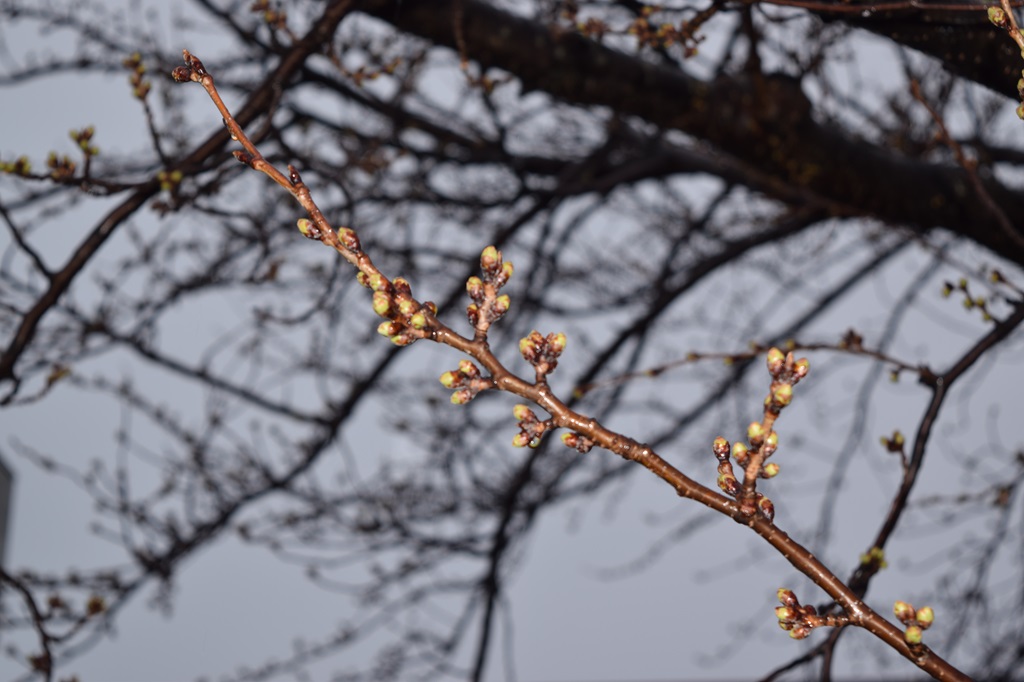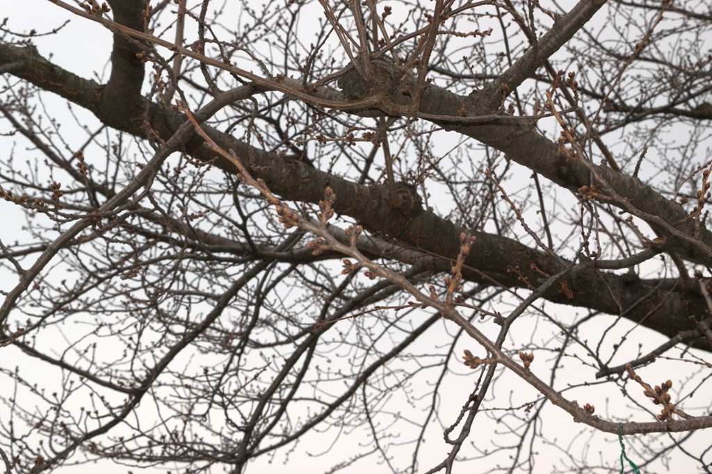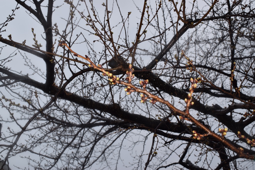 天気は雨。16時の気温は2.4度。 前日と比べて花芽に大きな変化は見られませんでした。 |