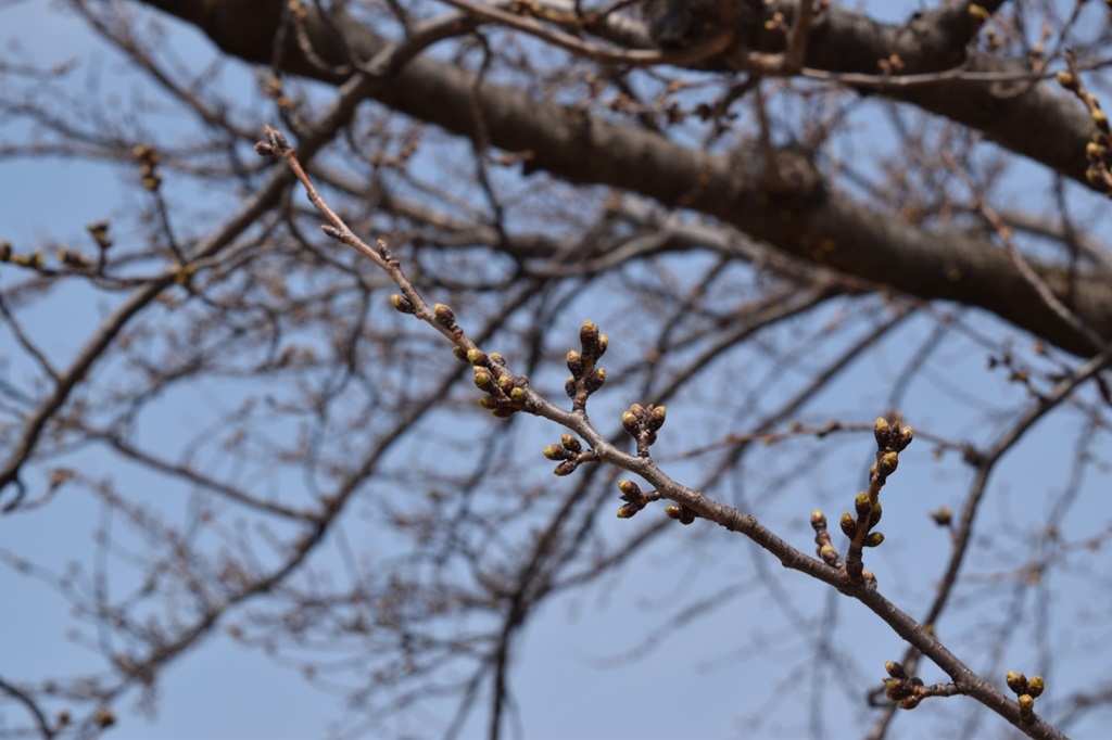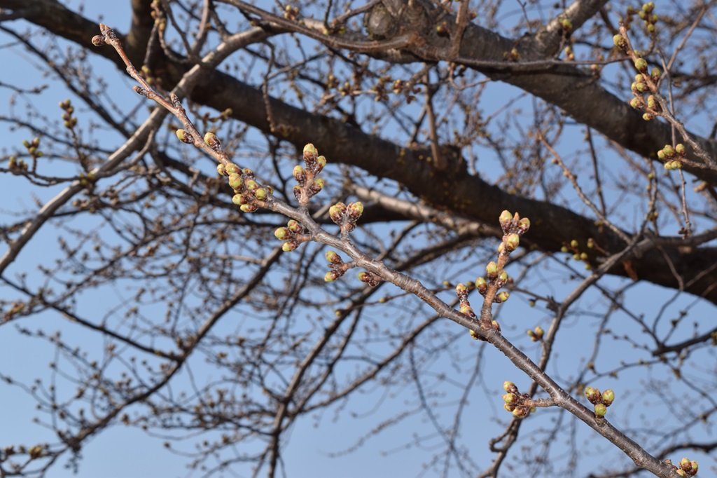 天気は晴れ。13時の気温は13.0度。 前日と比べて花芽に大きな変化は見られませんでした。 |
