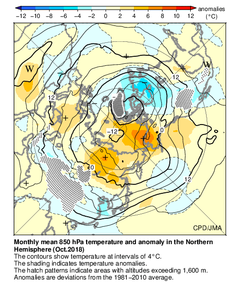 日本の東海上で高気圧の勢力が強く、北からの寒気が南下しにくかったため、秋の気温は北・東日本で高かった。