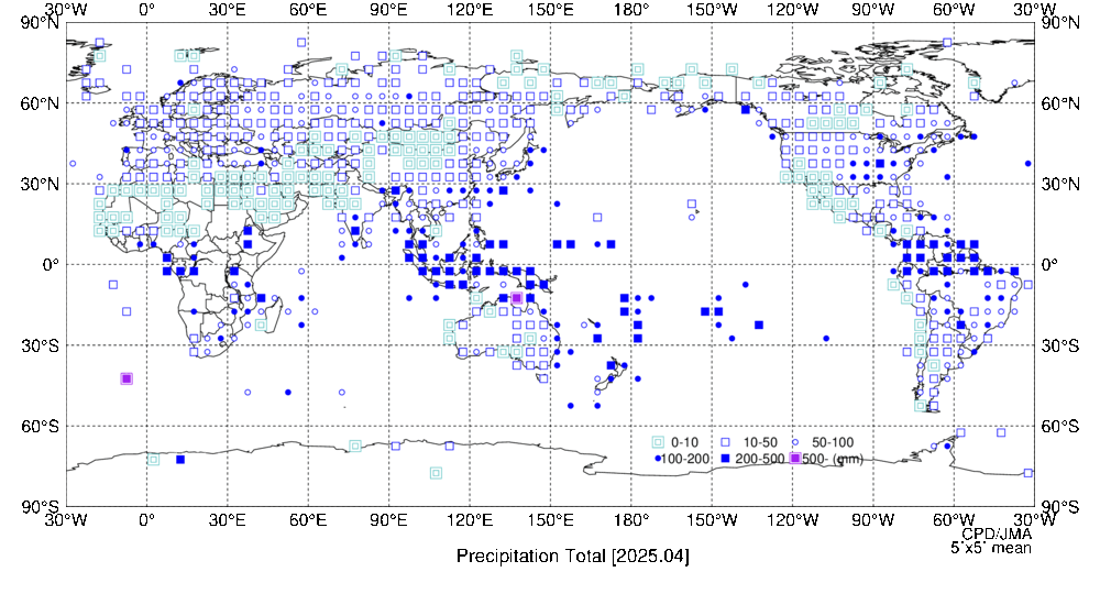 「異常気象発生地域・地点」は世界各国からの気象通報に基づいて判定しています。そのため、データが存在しないか未入電の場合は表示されません。