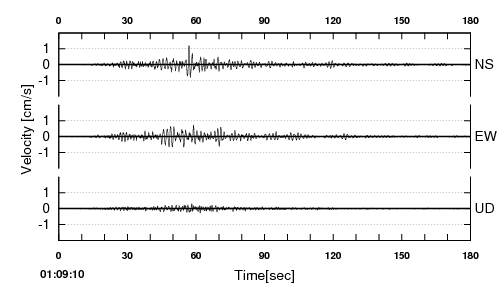 【観測地点】 地点名:吉野川市鴨島町 地域名:徳島県北部 観測時間 2022.01.22 01:09:10〜01:12:10 |