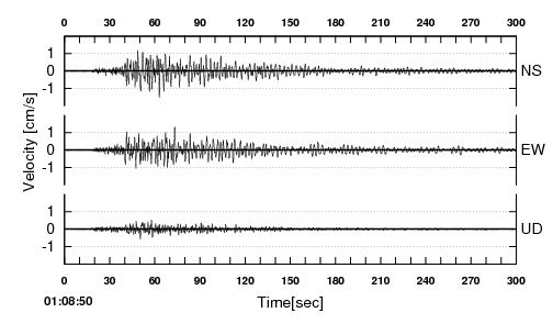 【観測地点】 地点名:鹿児島市東郡元 地域名:鹿児島県薩摩 観測時間 2022.01.22 01:08:50〜01:13:50 |