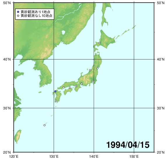 が掲載されている時間帯に黄砂が観測されています(1989年4月1日以降)。