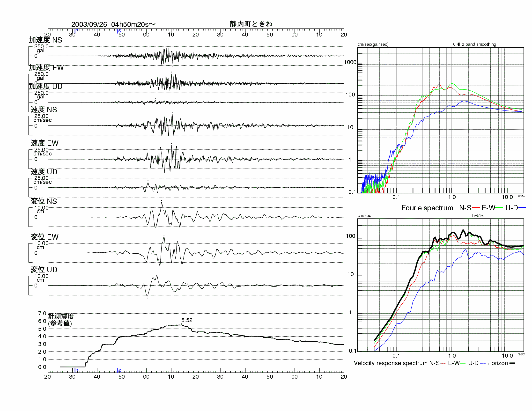 | 北海道 | 更別村更別* | 5強 | 5.3 | 250.8 | 238.1 | 209.1 | 142.7 | 121.2 | 波形 | ダウンロード |