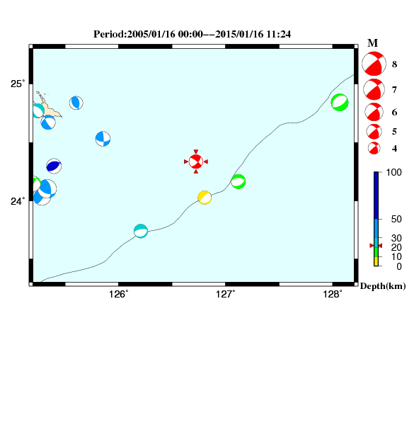 本ページ内の図の作成にはGMT(the Generic Mapping tool [Wessel,P.and W.H.F.Smith, Free software helps map and display data,EOS Trans. AGU,72,441,445-446,1991])を使用しています。