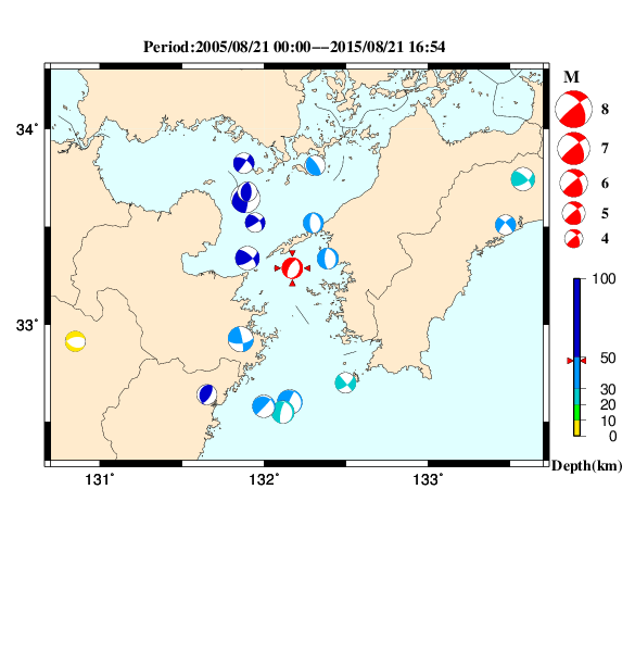 本ページ内の図の作成にはGMT(the Generic Mapping tool [Wessel,P.and W.H.F.Smith, Free software helps map and display data,EOS Trans. AGU,72,441,445-446,1991])を使用しています。