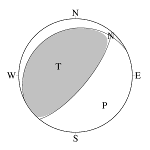 震源球 (下半球等積投影)