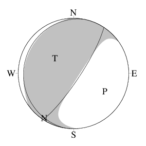 震源球 (下半球等積投影)