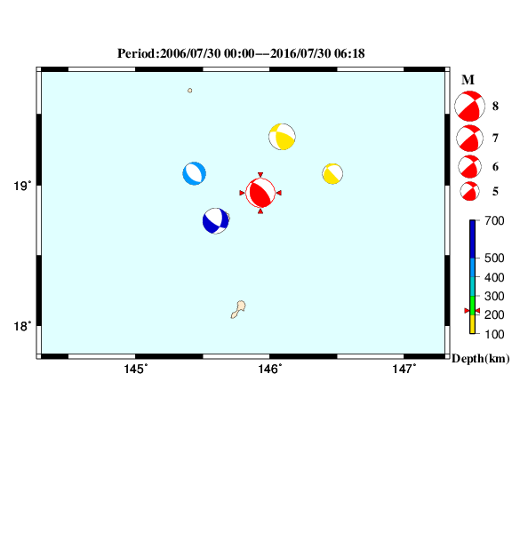 | 2016-07-30 06:18:25.7 | 北緯18度50.1分 | 東経145度45.5分 | 233km | 7.7 |