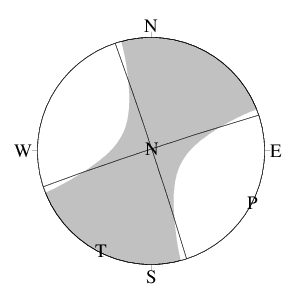 震源球 (下半球等積投影)
