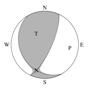震源球 (下半球等積投影)