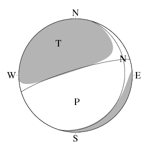 震源球 (下半球等積投影)