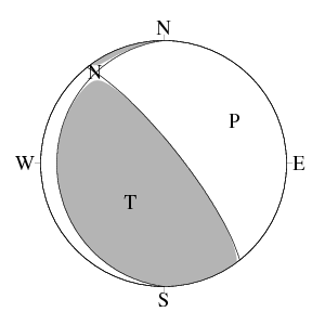 震源球 (下半球等積投影)