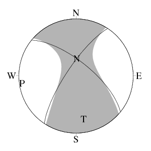 震源球 (下半球等積投影)