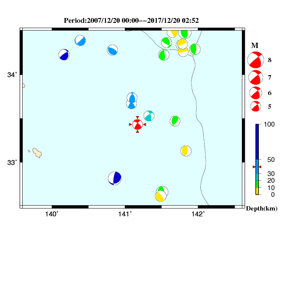 2017-12-20 02:52:37.1北緯33度31.8分東経141度08.7分57km5.0