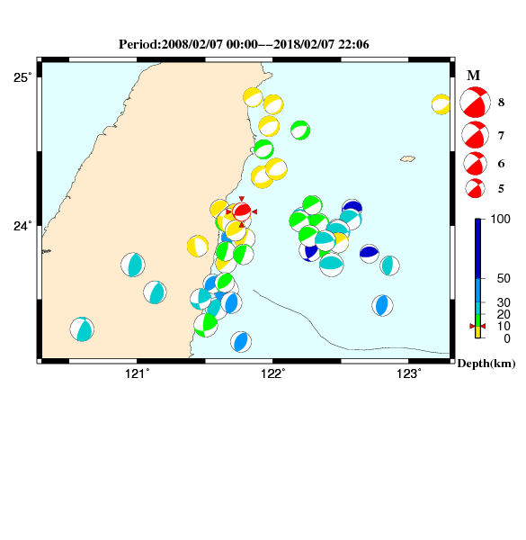 | 2018-02-07 22:06:42.6 | 北緯24度05.5分 | 東経121度46.1分 | 10km | 4.8 |