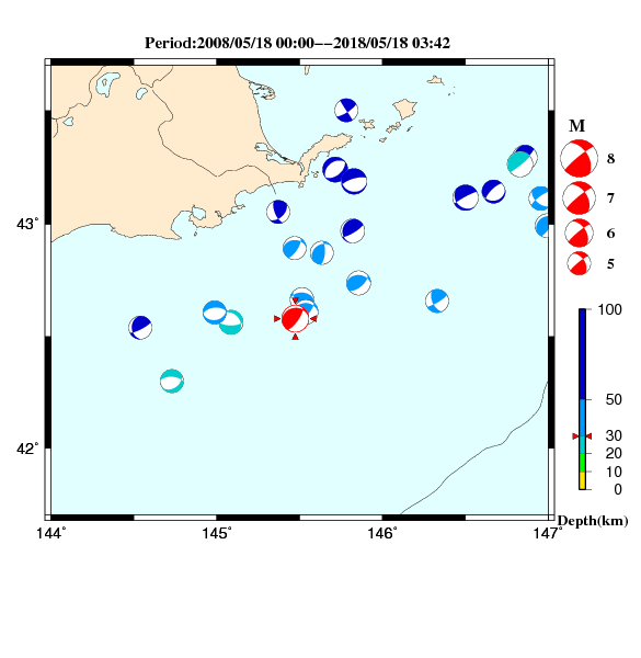 2018-05-18 03:42:15.7北緯42度34.7分東経145度28.4分30km5.8