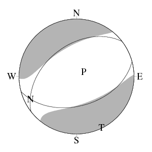 震源球 (下半球等積投影)
