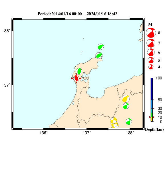 | 2024-01-16 18:42:19.7 | 北緯37度07.3分 | 東経136度45.3分 | 10km | 4.7 |