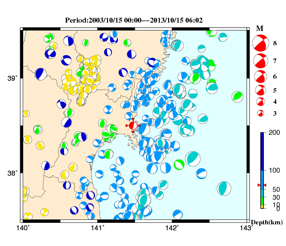 2013年10月15日06時02分 宮城県中部 M 3.8
