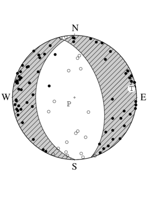 | 走向 | 傾斜 | すべり角 | P軸 | T軸 | N軸 | ||