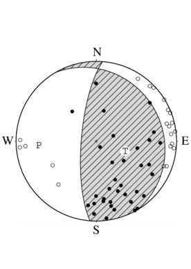| 走向 | 傾斜 | すべり角 | P軸 | T軸 | N軸 | ||