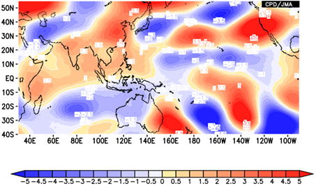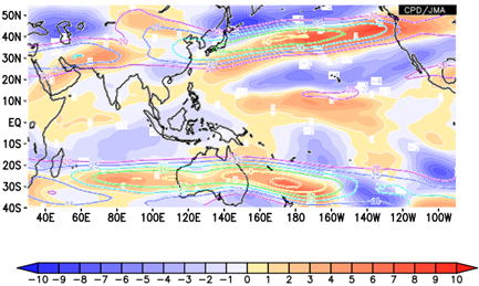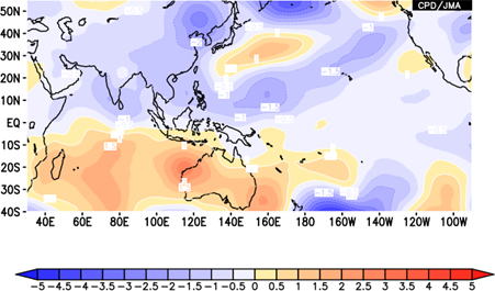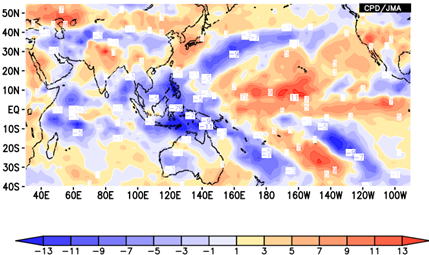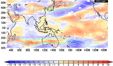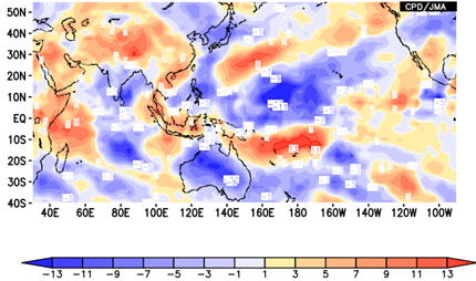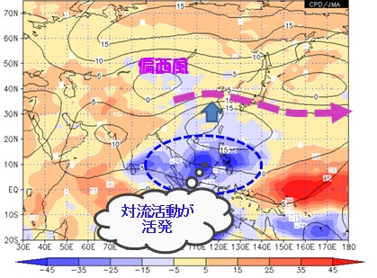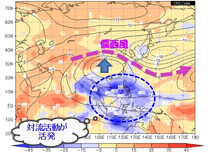 200hPaの循環偏差と対流活動 寒色(暖色)対流活動活発(不活発) |