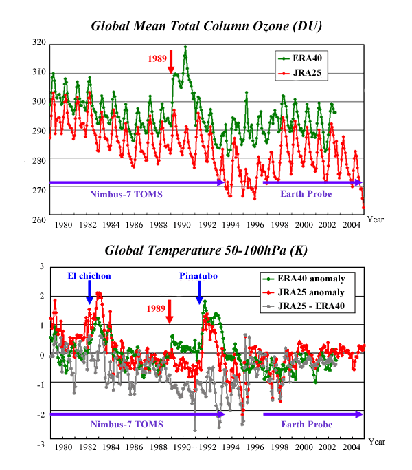 JRA-25とERA-40のオゾン濃度と気温の比較 |
