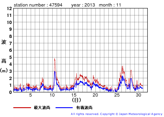 - 同じ波高を複数回観測している場合は、最新の時間の観測値を表示しています。