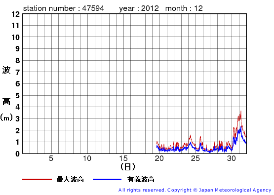 - 同じ波高を複数回観測している場合は、最新の時間の観測値を表示しています。