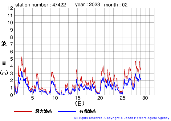 - これまでの沿岸波浪計観測値に関する情報は、過去のお知らせに掲載しています。