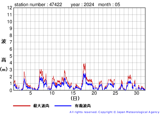 - 同じ波高を複数回観測している場合は、最新の時間の観測値を表示しています。