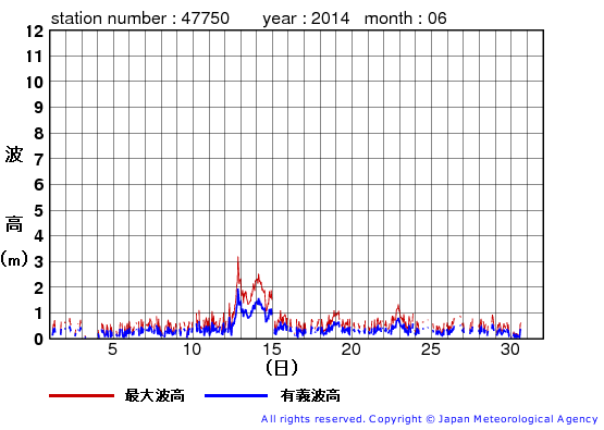 • 同じ波高を複数回観測している場合は、最新の時間の観測値を表示しています。