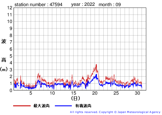 • 同じ波高を複数回観測している場合は、最新の時間の観測値を表示しています。