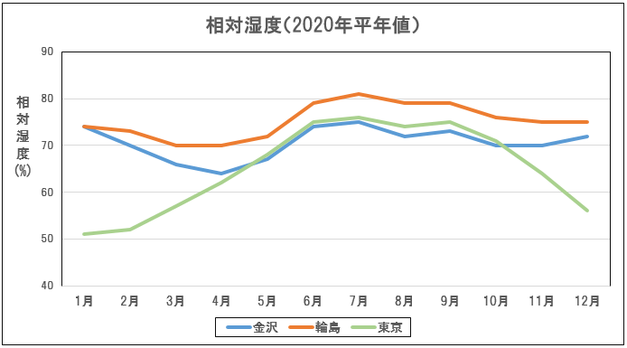 「能登地方(データは輪島特別地域気象観測所)」