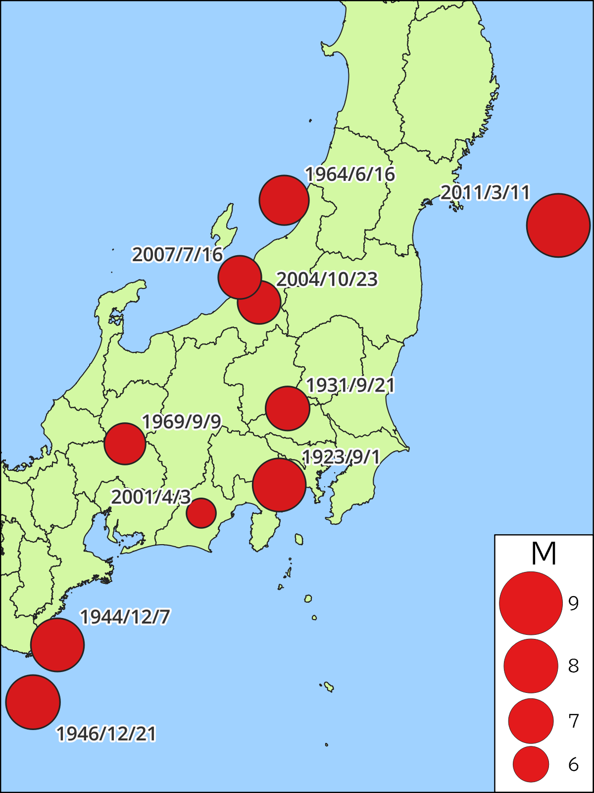 - ※ 太字で記載したものは、気象庁が名称を定めた地震を示しています。