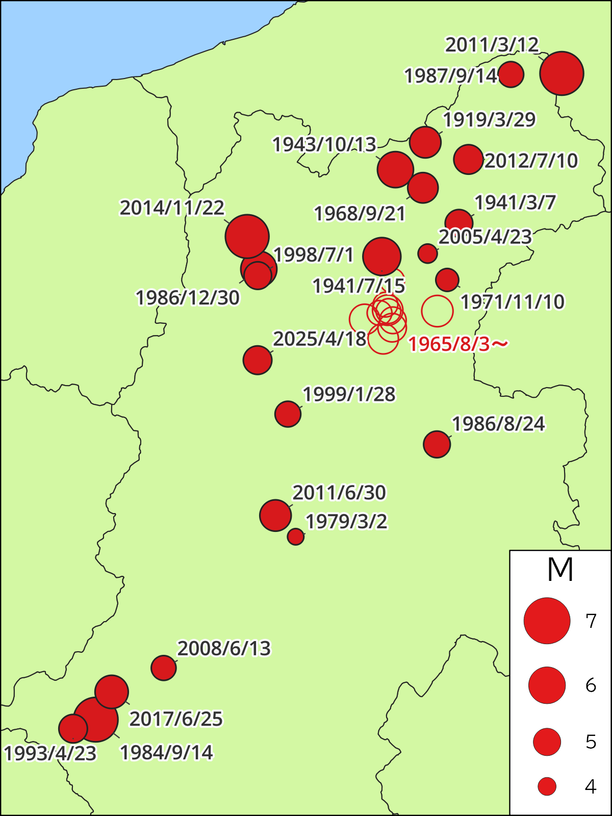 長野県の主な被害地震