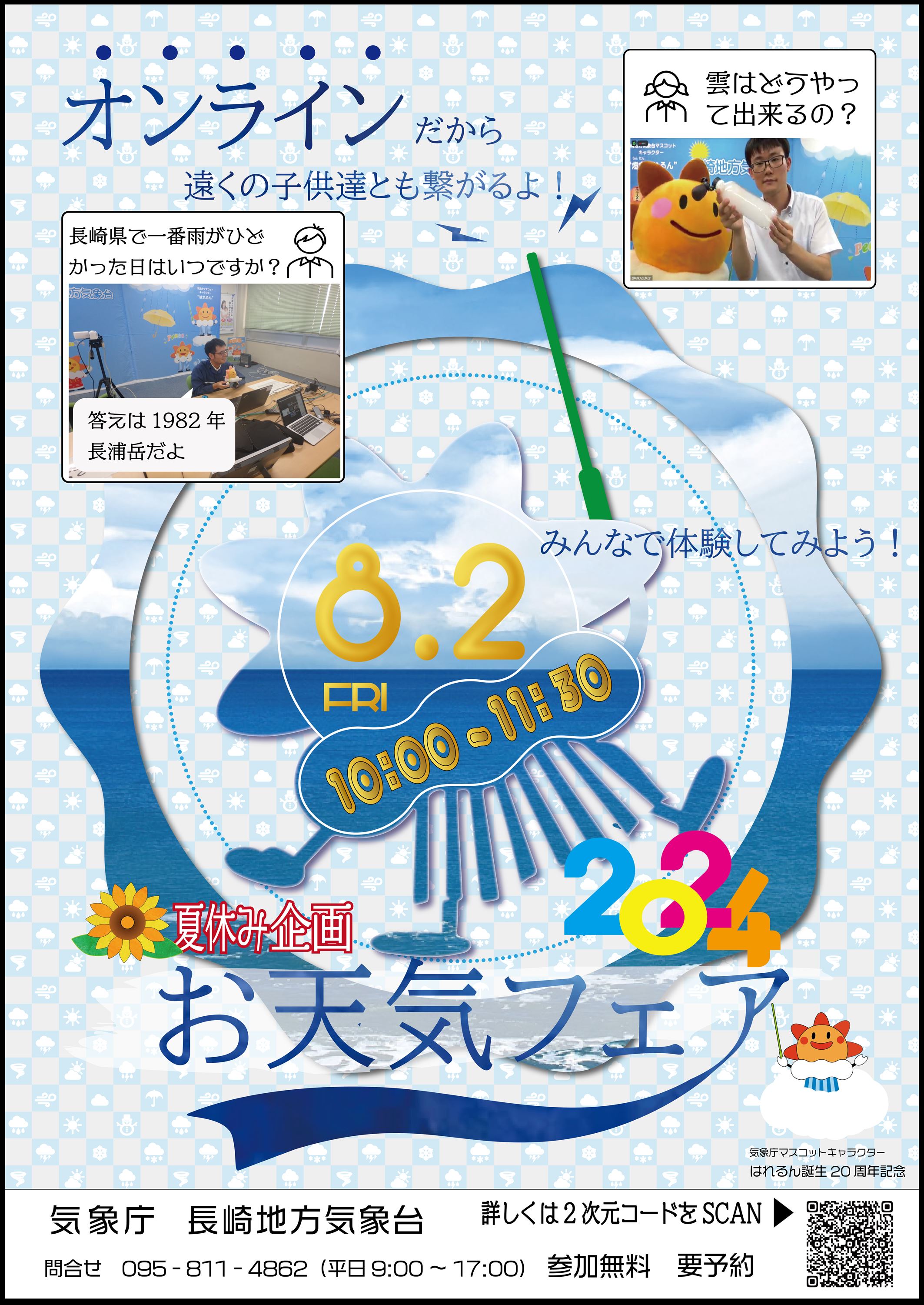 長崎地方気象台では、気象のことや地震のことなどを身近に感じていただけるよう、「防災・減災お天気フェア2024」を開催します。
