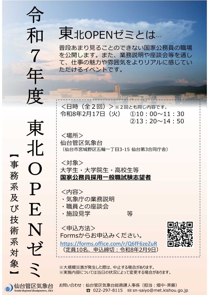 電話:022-297-8115(人事係) メール:sn-saiyo@met.kishou.go.jp