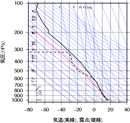 大気パラメータ米子 1975年10月12日09時(高層気象観測データを使用)
