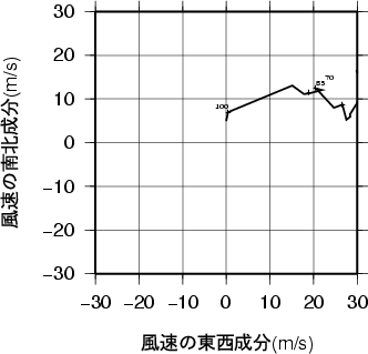 表中のMUCAPE850hPaは、最不安定CAPE(地上~850hPa高度間で)を示す。 気温、露点の鉛直分布(エマグラム)米子 1983年04月03日21時(高層気象観測データを使用)![]() 赤線は、地表付近の空気塊を仮想的に上昇させたときの空気塊の温度の変化を示す。 湿球温位、温位、相当温位、飽和相当温位の鉛直分布米子 1983年04月03日21時(高層気象観測データを使用)![]() 風のホドグラフ(広域)米子 1983年04月03日21時(高層気象観測データを使用)![]() 風のホドグラフ(拡大)米子 1983年04月03日21時(高層気象観測データを使用)![]() |