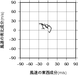 表中のMUCAPE850hPaは、最不安定CAPE(地上~850hPa高度間で)を示す。 気温、露点の鉛直分布(エマグラム)名瀬 1983年09月25日21時(高層気象観測データを使用)![]() 赤線は、地表付近の空気塊を仮想的に上昇させたときの空気塊の温度の変化を示す。 湿球温位、温位、相当温位、飽和相当温位の鉛直分布名瀬 1983年09月25日21時(高層気象観測データを使用)![]() 風のホドグラフ(広域)名瀬 1983年09月25日21時(高層気象観測データを使用)![]() 風のホドグラフ(拡大)名瀬 1983年09月25日21時(高層気象観測データを使用)![]() |