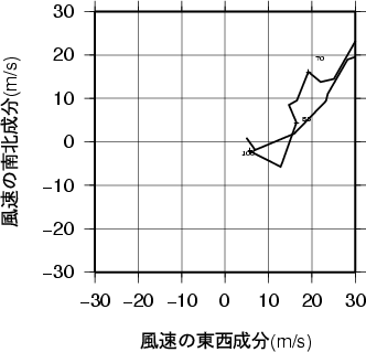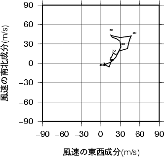 表中のMUCAPE850hPaは、最不安定CAPE(地上~850hPa高度間で)を示す。 気温、露点の鉛直分布(エマグラム)浜松 1986年12月19日09時(高層気象観測データを使用)![]() 赤線は、地表付近の空気塊を仮想的に上昇させたときの空気塊の温度の変化を示す。 湿球温位、温位、相当温位、飽和相当温位の鉛直分布浜松 1986年12月19日09時(高層気象観測データを使用)![]() 風のホドグラフ(広域)浜松 1986年12月19日09時(高層気象観測データを使用)![]() 風のホドグラフ(拡大)浜松 1986年12月19日09時(高層気象観測データを使用)![]() |