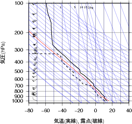 大気パラメータ浜松 1986年12月19日09時(高層気象観測データを使用)