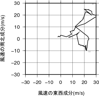 表中のMUCAPE850hPaは、最不安定CAPE(地上~850hPa高度間で)を示す。 気温、露点の鉛直分布(エマグラム)秋田 1989年05月15日09時(高層気象観測データを使用)![]() 赤線は、地表付近の空気塊を仮想的に上昇させたときの空気塊の温度の変化を示す。 湿球温位、温位、相当温位、飽和相当温位の鉛直分布秋田 1989年05月15日09時(高層気象観測データを使用)![]() 風のホドグラフ(広域)秋田 1989年05月15日09時(高層気象観測データを使用)![]() 風のホドグラフ(拡大)秋田 1989年05月15日09時(高層気象観測データを使用)![]() |