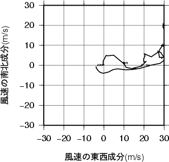 表中のMUCAPE850hPaは、最不安定CAPE(地上~850hPa高度間で)を示す。 気温、露点の鉛直分布(エマグラム)米子 1993年07月17日21時(高層気象観測データを使用)![]() 赤線は、地表付近の空気塊を仮想的に上昇させたときの空気塊の温度の変化を示す。 湿球温位、温位、相当温位、飽和相当温位の鉛直分布米子 1993年07月17日21時(高層気象観測データを使用)![]() 風のホドグラフ(広域)米子 1993年07月17日21時(高層気象観測データを使用)![]() 風のホドグラフ(拡大)米子 1993年07月17日21時(高層気象観測データを使用)![]() |